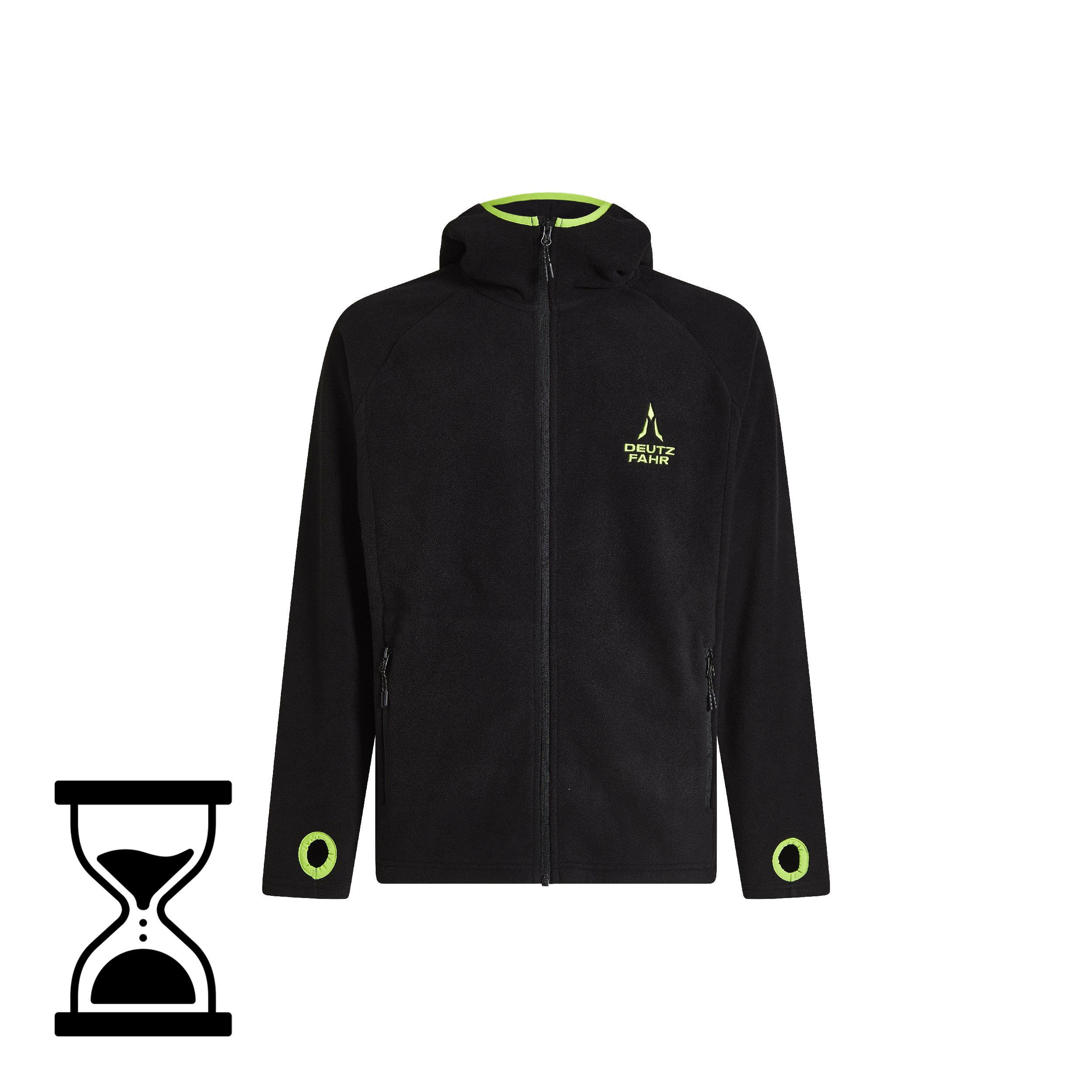 Das schwarze Herren-Sweatshirt DEUTZ-FAHR mit gesticktem grünem Logo ist aus 100 % 240 g Microfleece gefertigt. Der mittlere Reißverschluss, die Seitentaschen und die mit einem Daumenloch versehenen Ärmelbündchen garantieren einen perfekten Sitz und erleichtern die Bewegung. Das Futter der Kapuze ist mit einem individuellen Print versehen, der dem Kleidungsstück zusätzlich eine stilvolle Note verleiht.